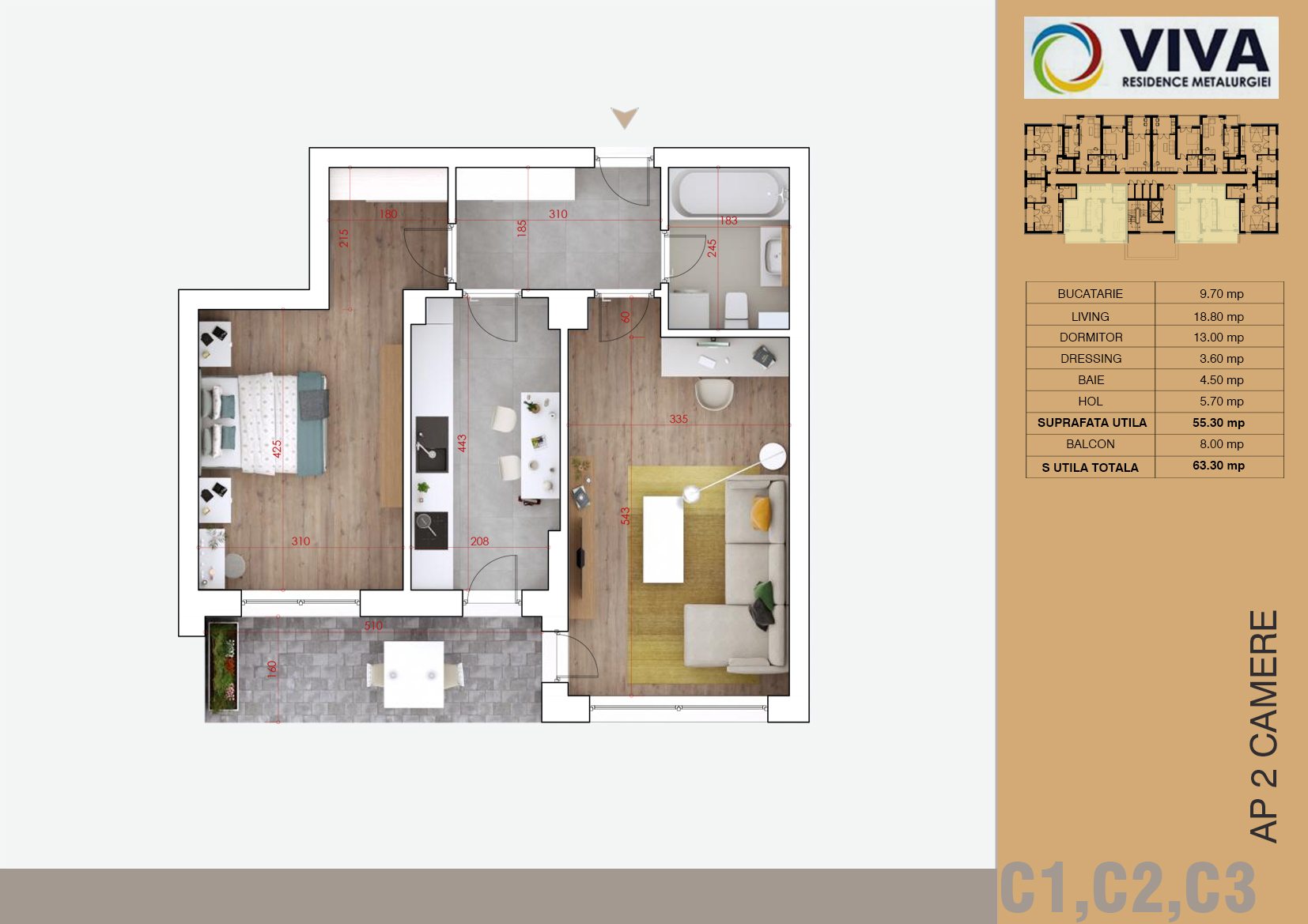 Suprafata Totala62.30mp